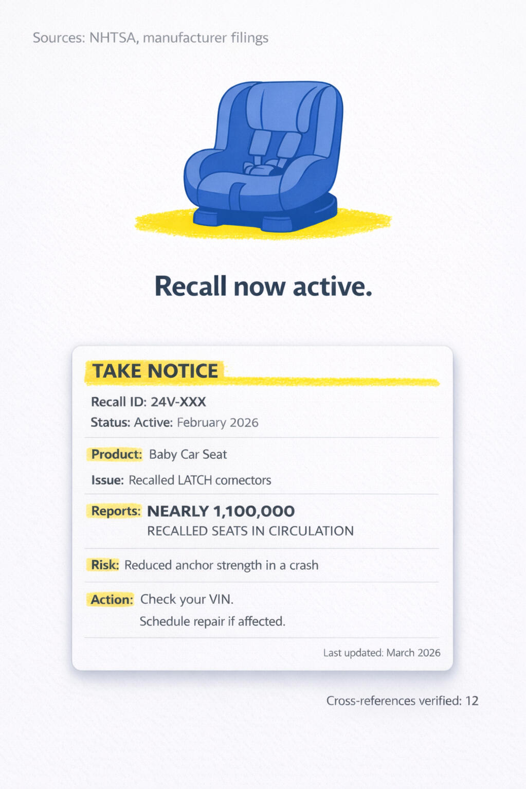 Take Notice is the only service built to watch what happens before a recall.Most products are in homes long before anything becomes official.Complaints build quietly. Patterns form before the public announcement.Take Notice exists for that gap.